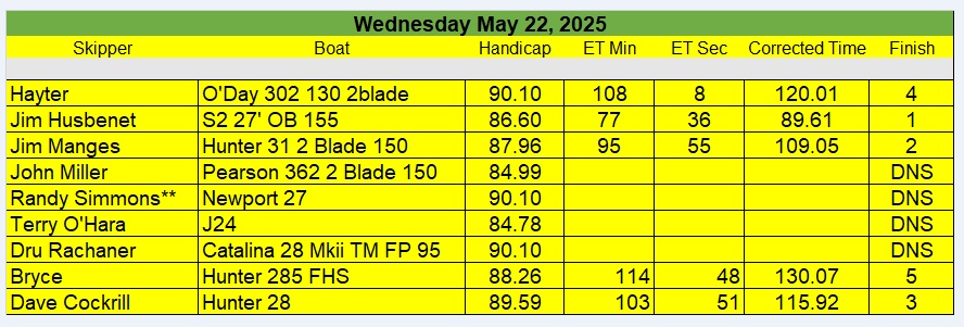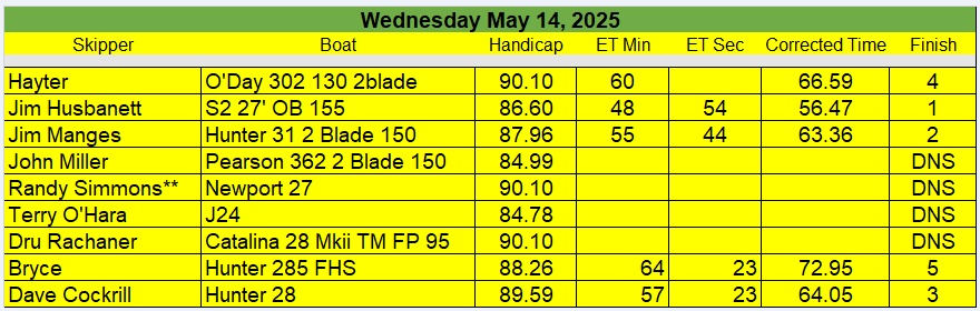 Wednesday Beer Can Race starts May 13th – October 14th 5:30pm start time