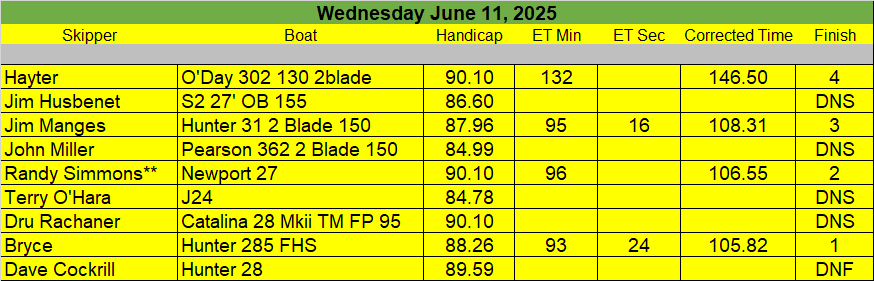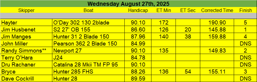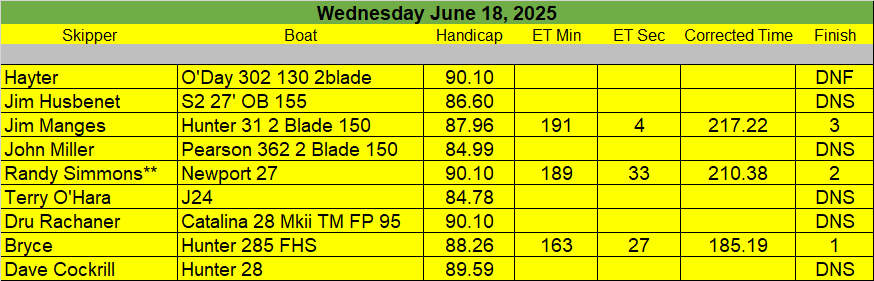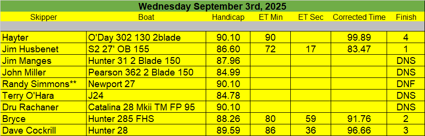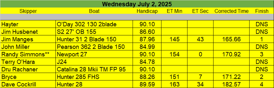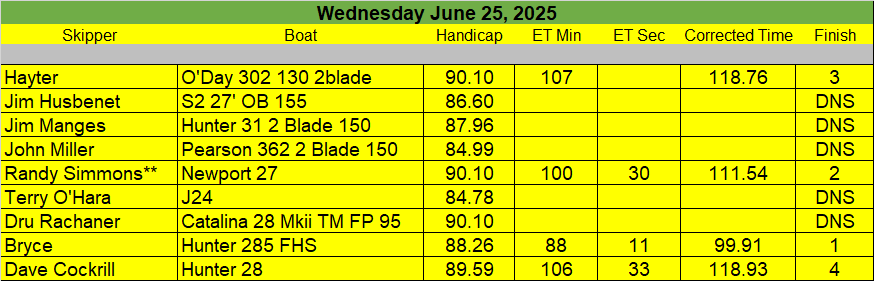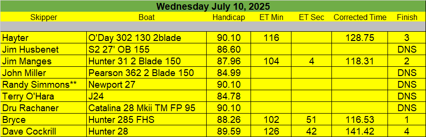 7-26-25 Fun Race III (Sailors, With the heat / humidity we are cancelling the Fun Race Saturday)