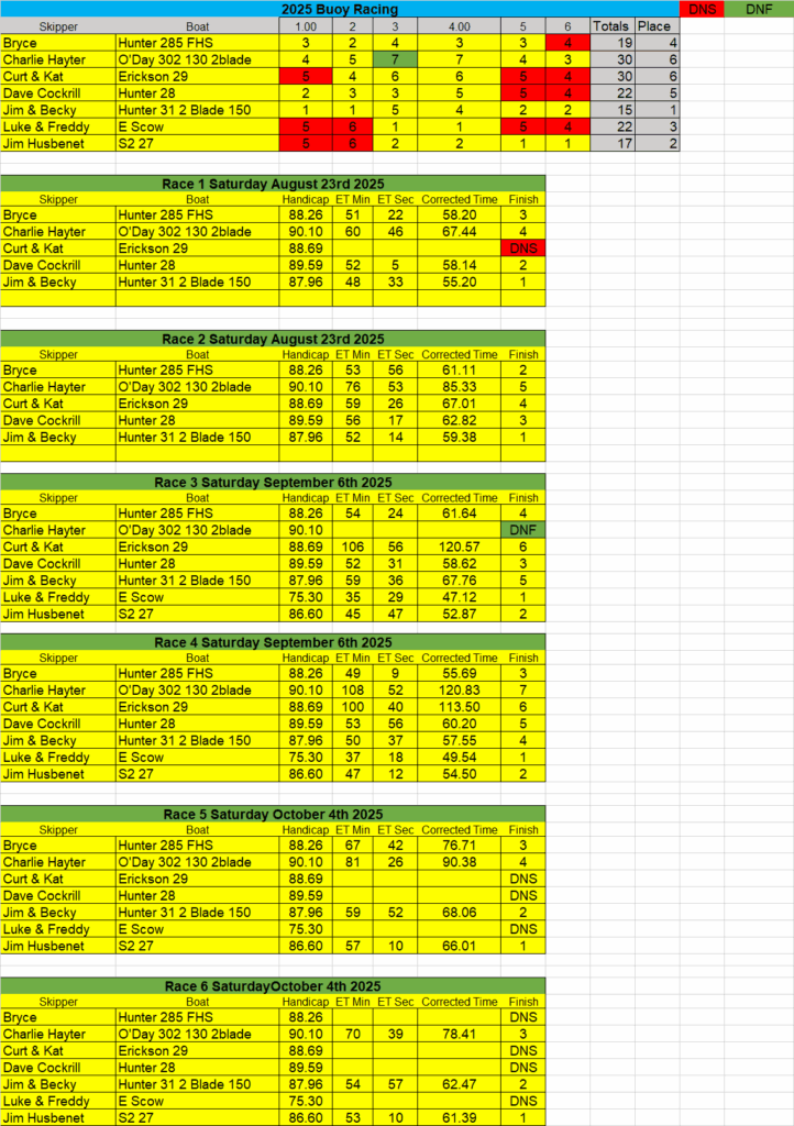 Race Results for Buoy Races on October 12